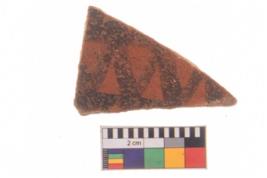 | Description / विवरण | Specimen of potsherd with decorative geometric painting, Type Black on Red ware . |