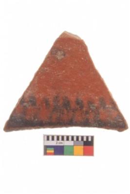 | Description / विवरण | Specimen of potsherd with decorative geometric painting, Type Black on Red ware . |