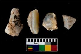 | Description / विवरण | There are n 4 of utilized worked cores. They show multidirectional irregular scar pattern and have sharp edges. Two are tapering on one end. |