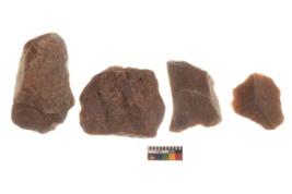| Description / विवरण | There are n 4 utilized worked flakes; they show multidirectional irregular scar pattern on both dorsal and ventral face of the flakes. Two are tapering at one end and having sharp edges. |