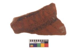 | Description / विवरण | Specimen of potsherd with traces of decorative geometric painting, Type Black on Red ware . |