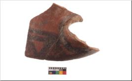 | Description / विवरण | Specimen of potsherd with decorative geometric painting, Type Black on Red ware . |