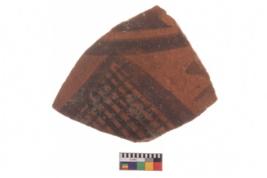 | Description / विवरण | Specimen of potsherd with decorative geometric painting, Type Black on Red ware . |
