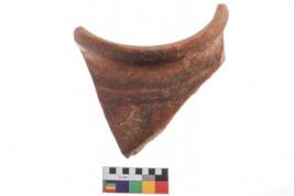 | Description / विवरण | Specimen of potsherd with decorative geometric painting, Type Black on Red ware . |