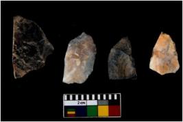 | Description / विवरण | There are n 4 of utilized worked cores. They show multidirectional irregular scar pattern. All are tapering on one end and two have flat base. |