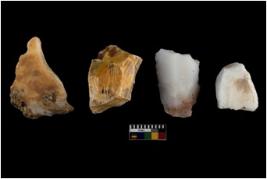 | Description / विवरण | There are n 4 of utilized worked cores. They show multidirectional irregular dominant scar pattern. One of them is tapering at one end. |