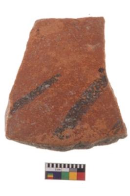 | Description / विवरण | Specimen of potsherd with decorative geometric painting, Type Black on Red ware . |