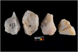 | Description / विवरण | There are n 4 flake cores. All of them are fluted flake cores without any trace of crested ridge flakes. Some have flat base. Some have blunted edges and few of them have sharp edges. |