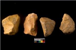 | Description / विवरण | There are n 4 of utilized worked cores. There are multidirectional irregular dominant scar pattern on both dorsal and ventral side. Some are tapering at one end. |