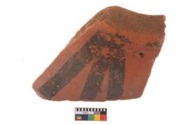 | Description / विवरण | Specimen of potsherd with decorative geometric painting, Type Black on Red ware . |