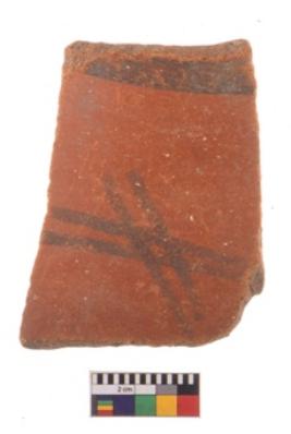 | Description / विवरण | Specimen of potsherd with decorative geometric painting, Type Black on Red ware . |