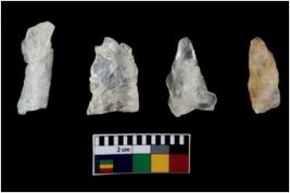 | Description / विवरण | There are n 4 flake cores. All of them are fully fluted flake cores without any trace of crested ridge flakes. They are tapering at one end. Some have flat base and few have round edges. |