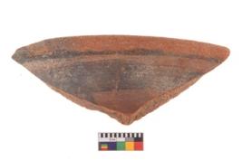 | Description / विवरण | Specimen of potsherd with decorative geometric painting, Type Black on Red ware . |