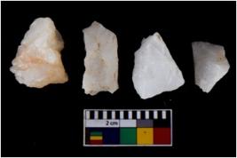 | Description / विवरण | There are n 4 flake cores. All of them are fully fluted flake cores without any trace of crested ridge flakes. Some are tapering at one end. Some have flat base and few have sharp edges. |