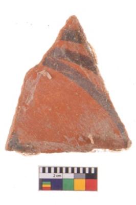 | Description / विवरण | Specimen of potsherd with decorative geometric painting, Type Black on Red ware . |