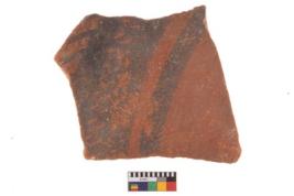 | Description / विवरण | Specimen of potsherd with decorative geometric painting, Type Black on Red ware . |