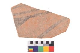 | Description / विवरण | Specimen of potsherd with traces of decorative geometric painting, Type Black on Red ware . |