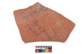 | Description / विवरण | Specimen of potsherd with traces of decorative geometric painting, Type Black on Red ware . |