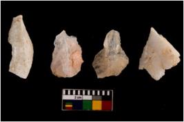 | Description / विवरण | There are n 4 flake cores. All of them are fully fluted flake cores without any trace of crested ridge flakes. Some are tapering at one end. Some have flat base and few have sharp edges. |
