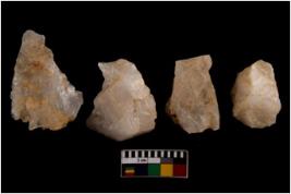 | Description / विवरण | There are n 4 flake cores. All of them are fully fluted flake cores without any trace of crested ridge flakes. Some have flat base. Some have sharp edges while some have blunted edges. |
