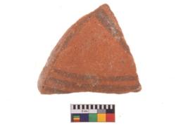 | Description / विवरण | Specimen of potsherd with traces of decorative geometric painting, Type Black on Red ware . |