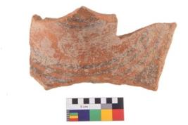 | Description / विवरण | Specimen of potsherd with traces of decorative geometric painting, Type Black on Red ware . |