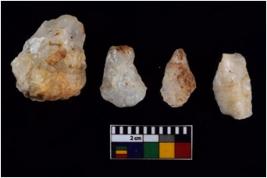 | Description / विवरण | There are n 4 flake cores. All of them are fluted flake cores without any trace of crested ridge flakes. Some have flat base. Some have blunted edges and few of them have sharp edges. |