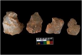 | Description / विवरण | There are n 4 of utilized worked cores. They show multidirectional irregular dominant scar pattern. Two are tapering on one end while three have round base. |