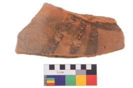 | Description / विवरण | Specimen of potsherd with decorative geometric painting, Type Black on Red ware . |