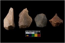 | Description / विवरण | There are n 4 of utilized worked cores. They show multidirectional irregular scar pattern and have sharp edges. Three are tapering on one end. |