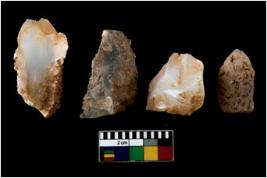| Description / विवरण | There are n 4 of utilized worked cores. They show multidirectional irregular dominant scar pattern. Three are tapering on one end. |