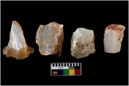 | Description / विवरण | There are n 4 of utilized worked cores. They show multidirectional irregular dominant scar pattern. One is tapering on one end and two have flat base. |