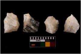 | Description / विवरण | There are n 4 flake cores. All of them are fully fluted flake cores without any trace of crested ridge flakes. Some are tapering at one end. Some have flat base and some have blunted edges. |