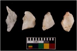 | Description / विवरण | There are n 4 flake cores. All of them are fully fluted flake cores without any trace of crested ridge flakes. Some are tapering at one end. Some have flat base and few have sharp edges. |