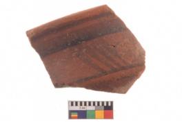 | Description / विवरण | Specimen of potsherd with decorative geometric painting, Type Black on Red ware . |
