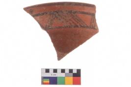 | Description / विवरण | Specimen of potsherd with decorative geometric painting, Type Black on Red ware . |