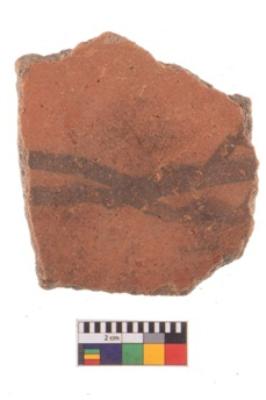 | Description / विवरण | Specimen of potsherd with decorative geometric painting, Type Black on Red ware . |