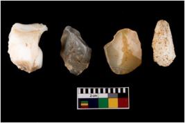 | Description / विवरण | There are n 04 cores, all are having blunt edges. They show crested ridge flakes. Three are roundish whereas one is tapering at one end. |