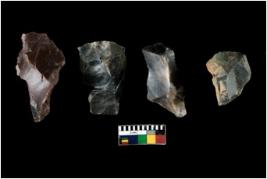 | Description / विवरण | There are n 4 of utilized worked cores. They show multidirectional irregular dominant scar pattern. One of them is tapering at one end. |
