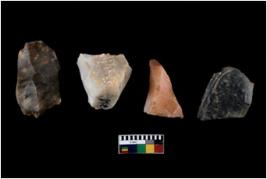| Description / विवरण | There are n 4 of utilized worked cores. They show multidirectional irregular dominant scar pattern. One of them is tapering at one end. |