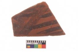 | Description / विवरण | Specimen of potsherd with decorative geometric painting, Type Black on Red ware . |