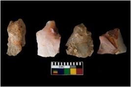 | Description / विवरण | There are n 4 of utilized worked cores. They show multidirectional irregular dominant scar pattern and three have flat base. |