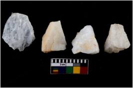 | Description / विवरण | There are n 4 flake cores. All of them are fully fluted flake cores without any trace of crested ridge flakes. Some are tapering at one end and few have round edges. |