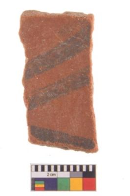 | Description / विवरण | Specimen of potsherd with decorative geometric painting, Type Black on Red ware . |