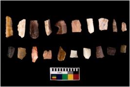 | Description / विवरण | There are n 20 blades; of which 15 are blades, some of which also appear as points, and the rest are debitages. The blades are intact with no retouchings and the edges appear smooth. There is less visible sign of damage. They show single scars on their surface. |