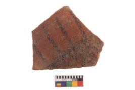 | Description / विवरण | Specimen of potsherd with decorative geometric painting, Type Black on Red ware . |