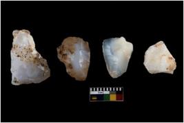 | Description / विवरण | There are n 4 of utilized worked cores. They show multidirectional irregular dominant scar pattern. One of them is tapering at one end. |