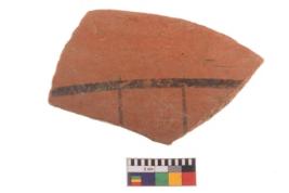 | Description / विवरण | Specimen of potsherd with traces of decorative geometric painting, Type Black on Red ware . |