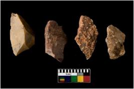 | Description / विवरण | There are n 4 of utilized worked cores. They show multidirectional irregular dominant scar pattern. All are tapering on one end. |