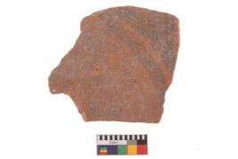 | Description / विवरण | Specimen of potsherd with traces of decorative geometric painting, Type Black on Red ware . |